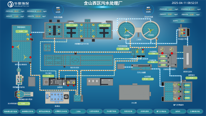 近日,安徽華騏環??萍脊煞萦邢薰具\營的含山縣西區污水處理廠通過深度融合物聯網、數字孿生、人工智能等前沿技術,自主研發成功構建了一套覆蓋“自動化控制-數據采集-實時映射-仿真模擬-智能決策”全業務的智慧水務體系,成為國內污水處理行業數字化轉型的標桿項目。該廠通過四大核心技術創新,實現了運營效率、能耗控制與工藝穩定性的全面提升,為行業智慧化升級提供了可復制的技術路徑、解決方案及軟件產品。