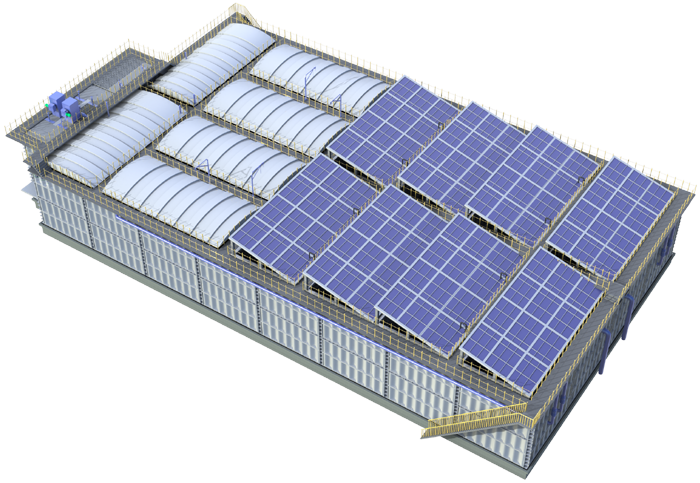 沭陽縣項目在碳減排領(lǐng)域更樹立新標(biāo)桿。通過集約化設(shè)計,鋼制模塊較混凝土結(jié)構(gòu)減重60%,運輸能耗下降50%;施工全程采用干法作業(yè),杜絕揚塵污染;項目后期的光伏一體化設(shè)計使廠區(qū)綠電自給率達(dá)30%。