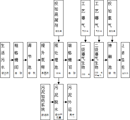 西城區污水處理廠的核心工藝是曝氣生物濾池,其它主體工藝有粗格柵間、調節池、預處理池、細格柵間、一級曝氣生物濾池、二級曝氣生物濾池、接觸池;輔助工藝有污泥處理間、鼓風機房、加氯間。主要處理水質指標包括COD、BOD、NH3-N、TP、SS五項指標。處理后污水的水質要求達到GB 18918-2002《城鎮污水處理廠污染物排放標準》中的一級B類標準。