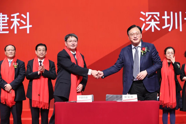 董事長王健與深交所領導簽署《證券上市儀式》
