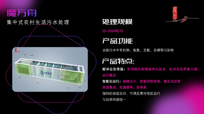 另外,還有針對小型分散式農村生活污水處理場景的魔方格產品,具有能耗低、運行簡單穩定兩大特色,日處理水量5噸的魔方格一天僅需一度電。