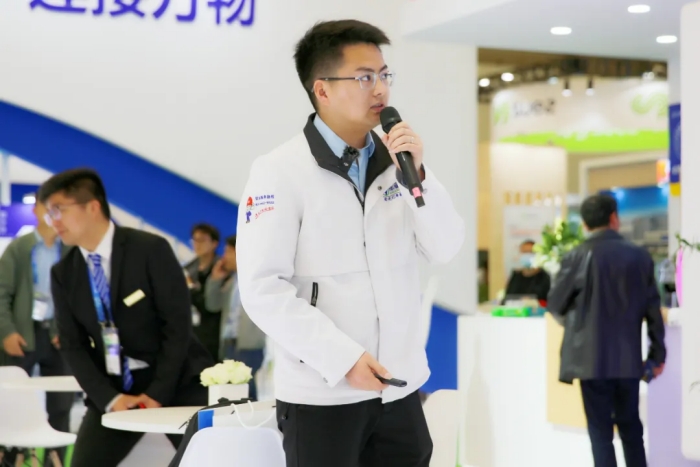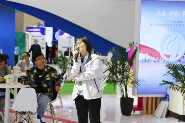 本屆環博會上,華騏環保積極與國內外環保領域的專家學者和企業代表充分交流,共同探討環境污染治理領域的前沿技術與最新解決方案。華騏環保副總裁連宏偉在接受E20環境平臺采訪時指出,作為創業板上市公司、國家級“專精特新"小巨人企業,華騏環保不斷提升自主創新水平,通過“一體多翼”的集團化戰略布局,堅持走技術產品化的高質量發展之路,加快形成新質生產力,以新技術、新產品創造新價值,以“高質服務”擘畫未來,以“智慧賦能”擎鑄未來。本次環博會,華騏環保的八位產品經理現場分享了“BAF智慧工藝的探索與實踐”、“綠色低碳裝配式污水處理廠”、“魔方智水多維場景污水治理的實踐與思考”、“iMagcoH磁混凝沉淀池技術及應用”、“iDebed深床反硝化濾池技術及應用”、“臭廢氣收集及處理系統解決方案”、“智能控制器在環保領域的應用與探討”等核心技術與裝備的精彩內容,充分展現了華騏環保在水務行業領域的綜合實力,亮點紛呈、內涵豐富,吸引了眾多與會嘉賓及業內人士駐足聆聽、互動交流。