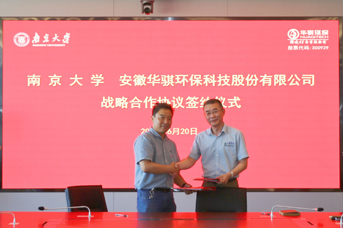 07-02簽約儀式現場今日,安徽華騏環保科技股份有限公司與南京大學正式簽署戰略合作協議,雙方將在智慧水務污水處理智能加藥系統、嵌入式工業過程控制器等方面展開深入合作,共同推…